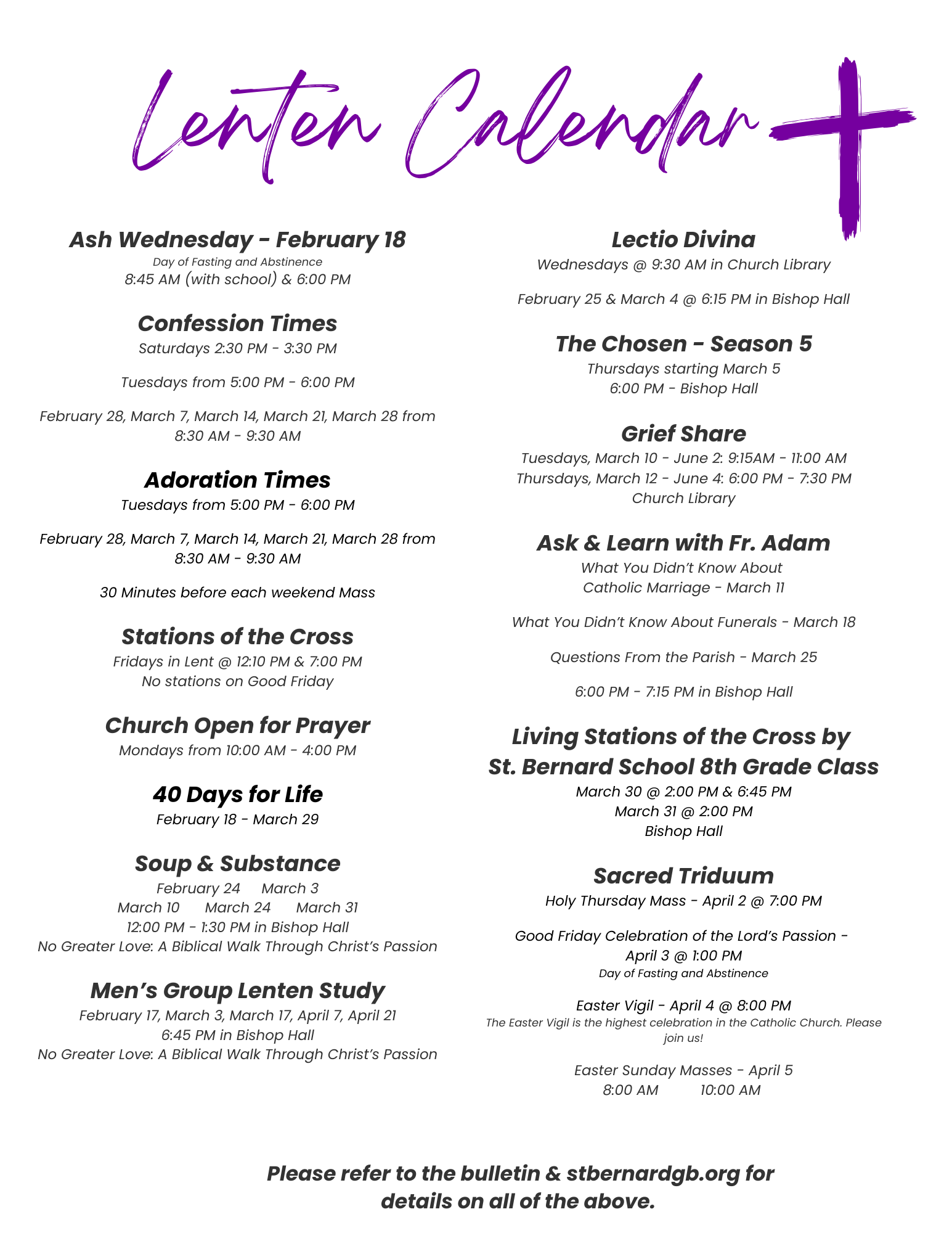 Looking to stay up to date on everything St. Bernard? Follow us on Facebook and Instagram! ***