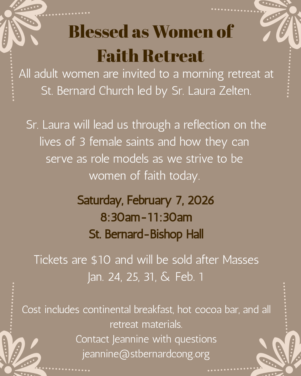 The St. Bernard Women of Faith community will plan quarterly events focusing on mind, body, & spirit of all.