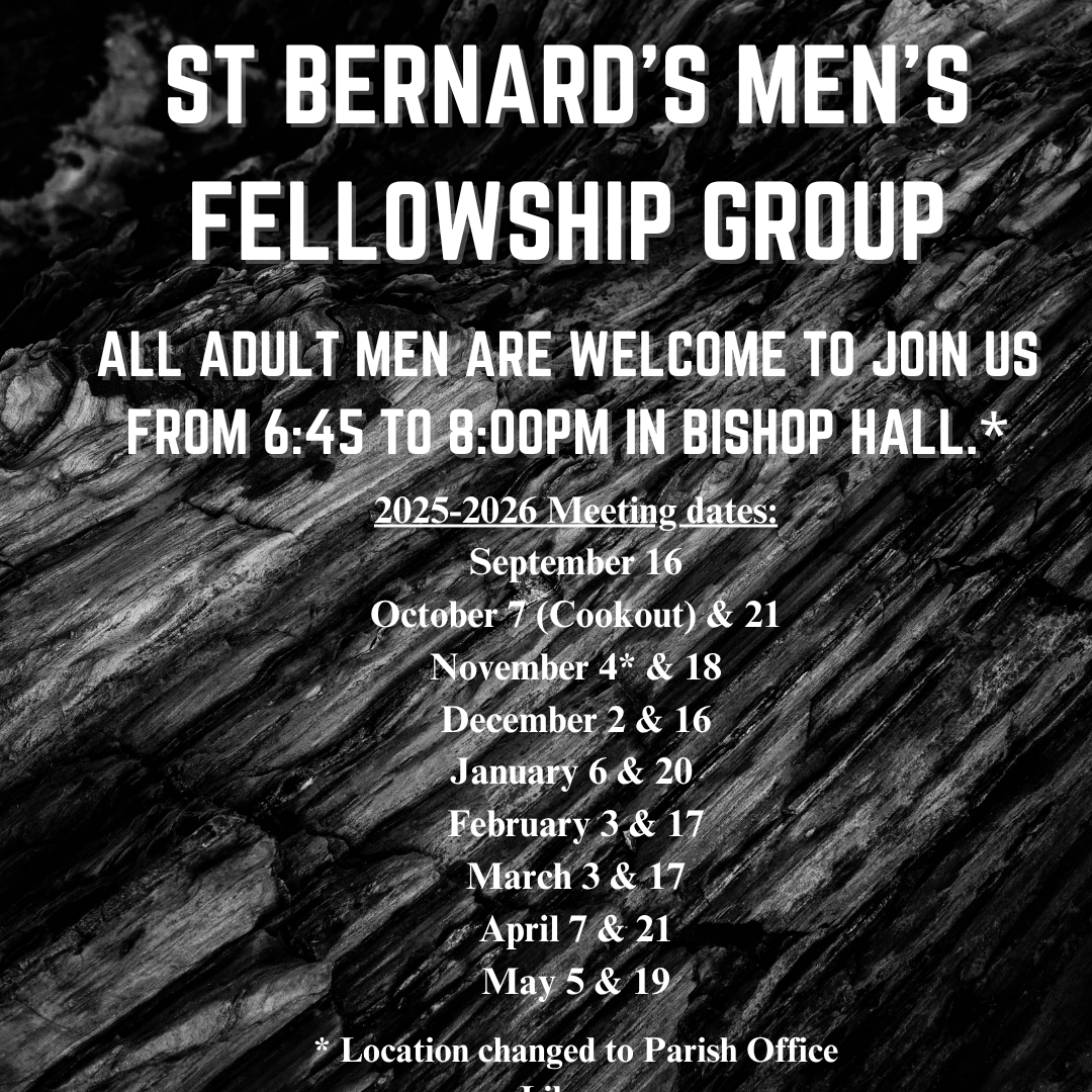 Each night we begin with prayer and fellowship. Snacks will be available. The video will be shown at 6:00 pm. with discussion to follow. Listeners are always welcome! Call or email Kathy in the parish office for more information. We would love to have you join us! kathy@stbernardcong.org or 920-468-4811.